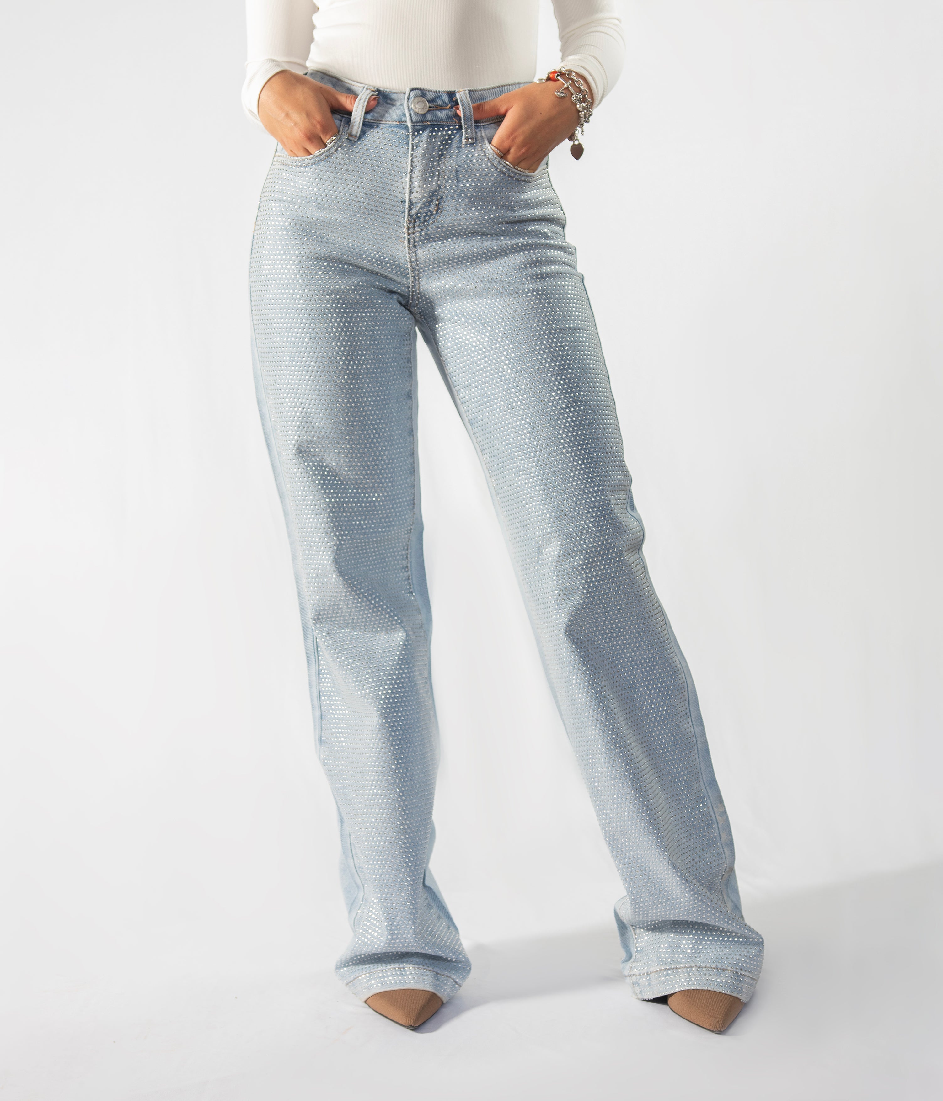 “Un pantalón que transforma la luz en estilo. ¿Estás lista para el efecto?”