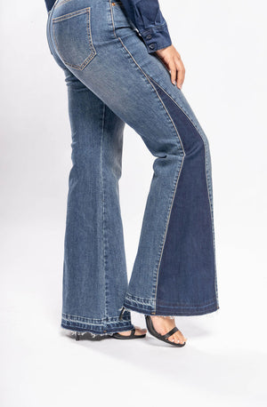 Pantalón flare denim contrastante