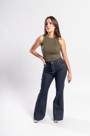 Pantalón flare denim dark