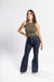 Diseño: Piernas acampanadas con costuras verticales marcadas.