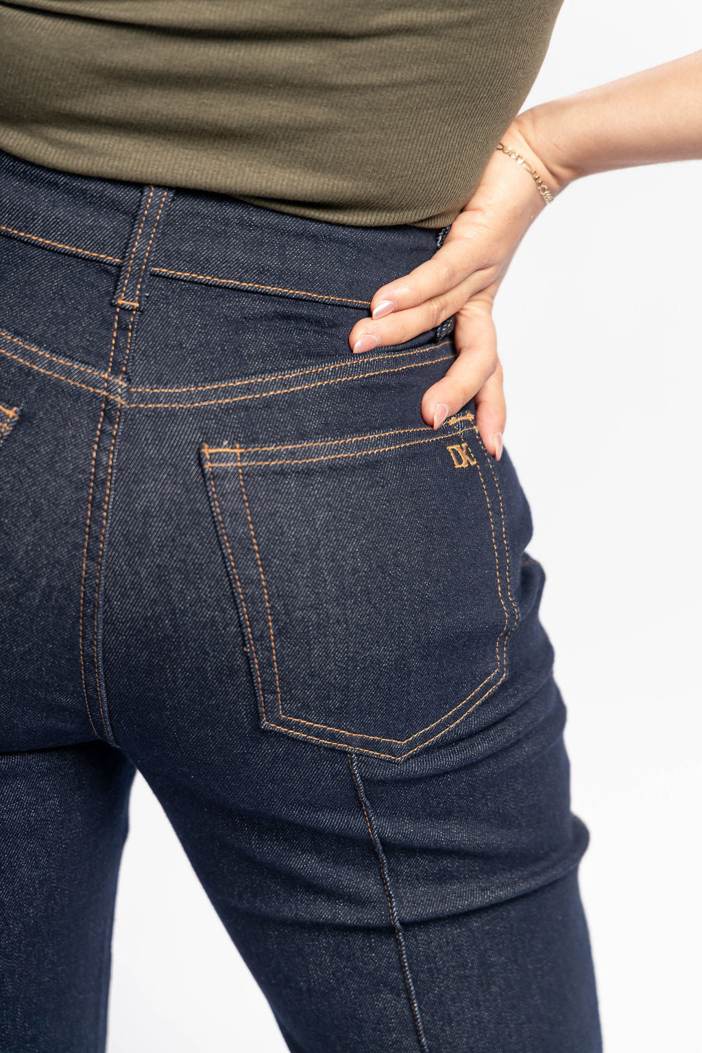 Estilo: Denim estructurado, estilo retro/moderno.