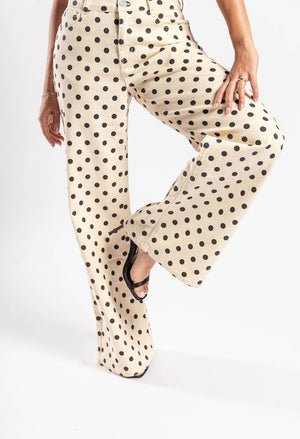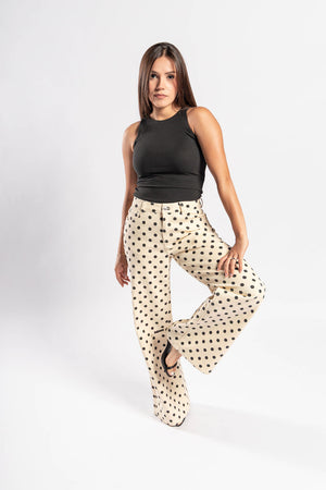 Nuestro pantalón Polka mezcla lo atemporal de los lunares con un fit que estiliza y roba miradas.