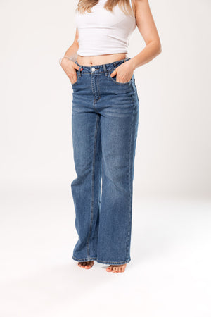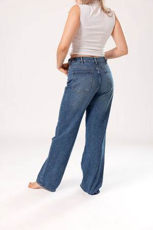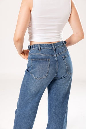 Silueta recta con tiro alto que estiliza la figura y brinda comodidad todo el día. Un básico versátil que combina con todo.