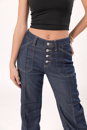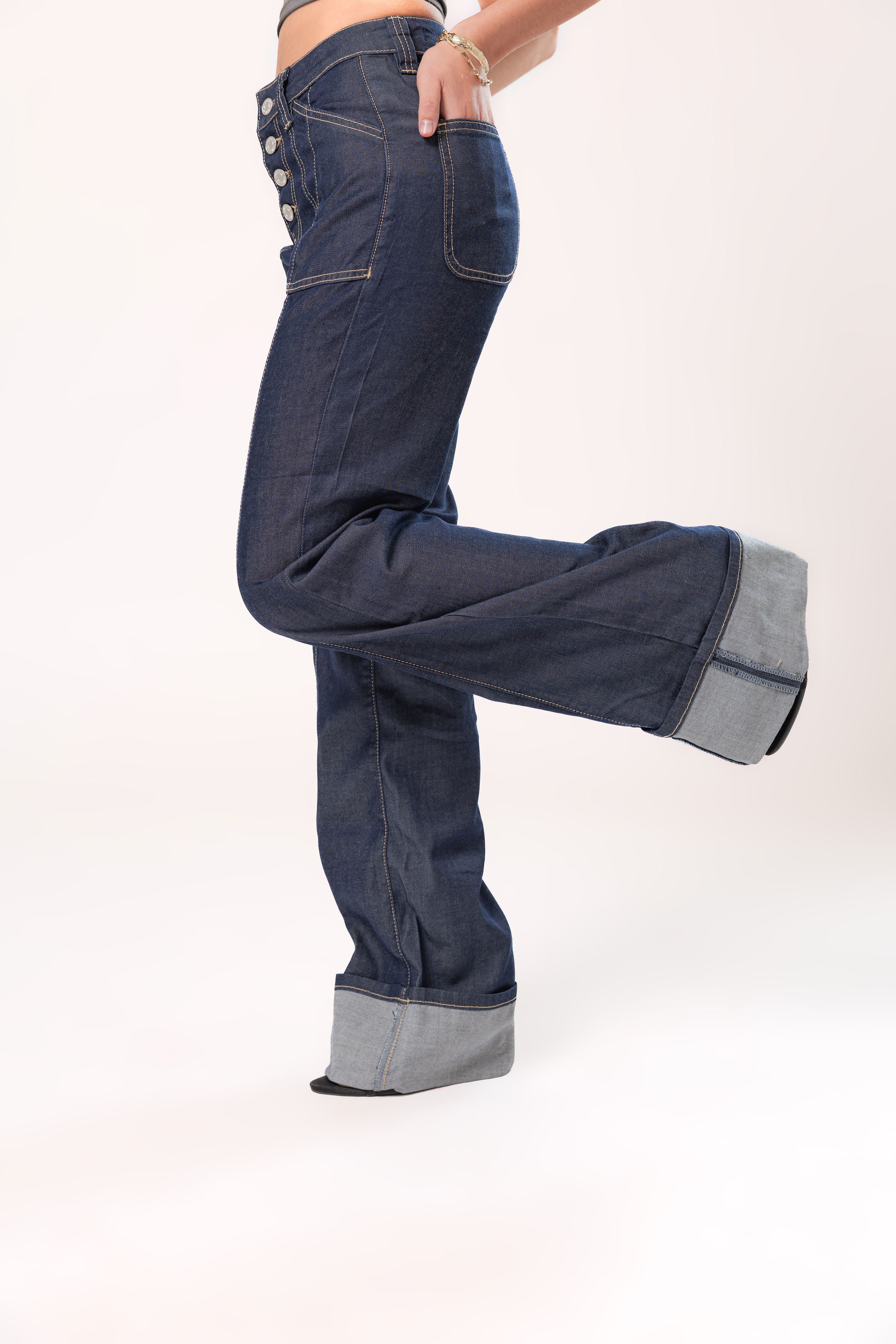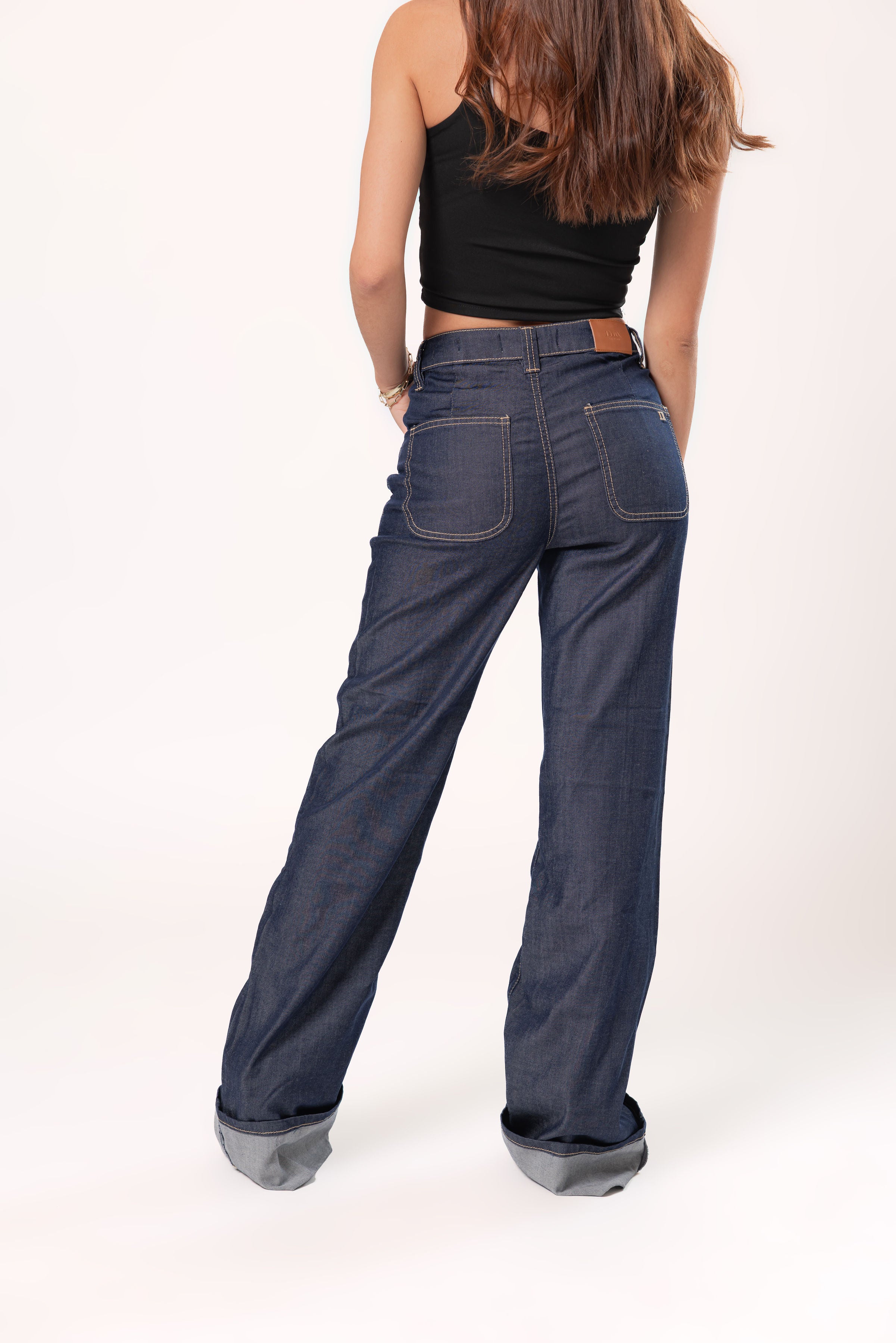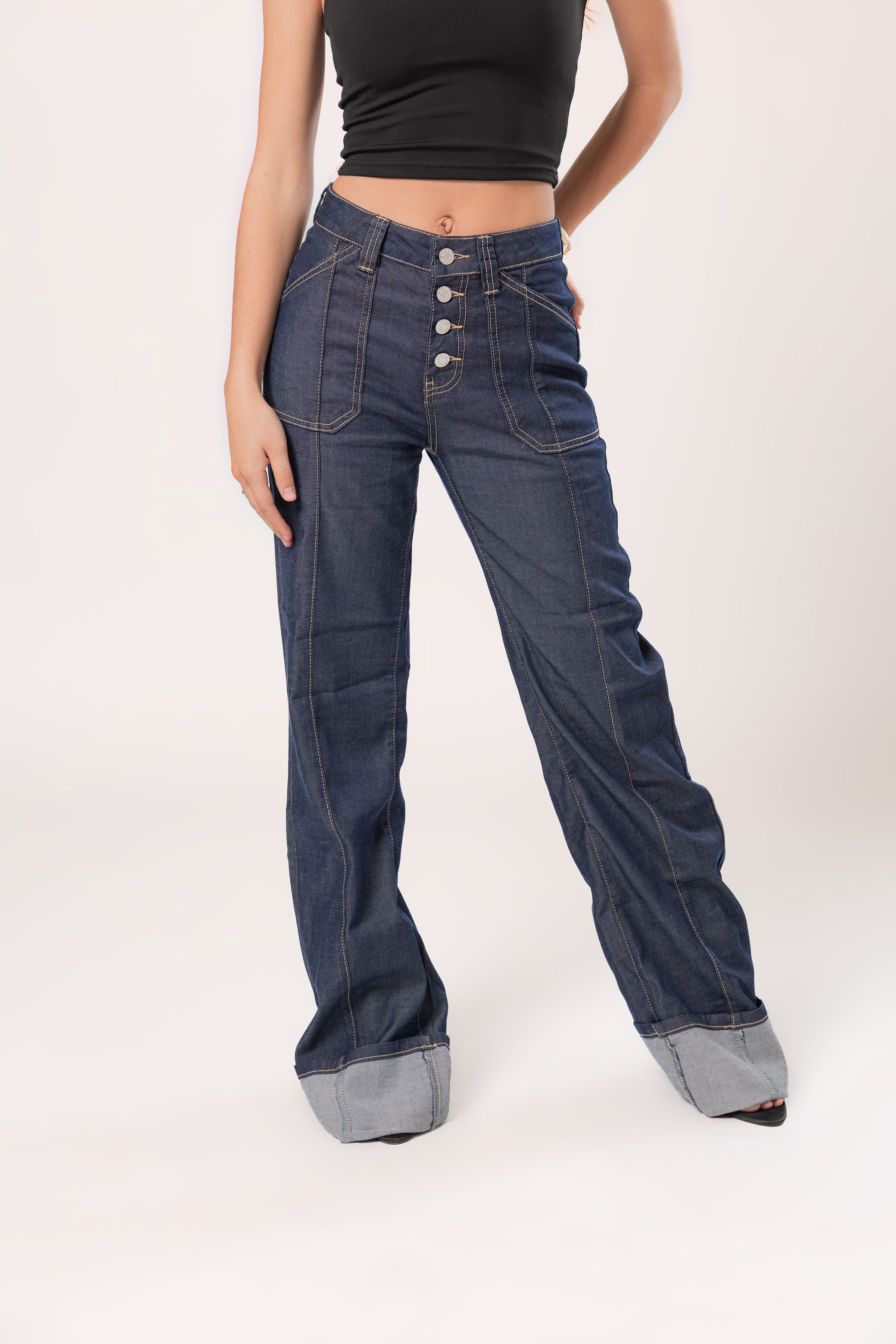 Un básico con actitud. Este pantalón de tiro alto estiliza la cintura mientras su corte wide leg alarga visualmente las piernas. El detalle de botones frontales y el dobladillo volteado le dan ese toque vintage–chic que lo hace único. Perfecto para crear looks casuales o elevar tu outfit con un top y tacones.